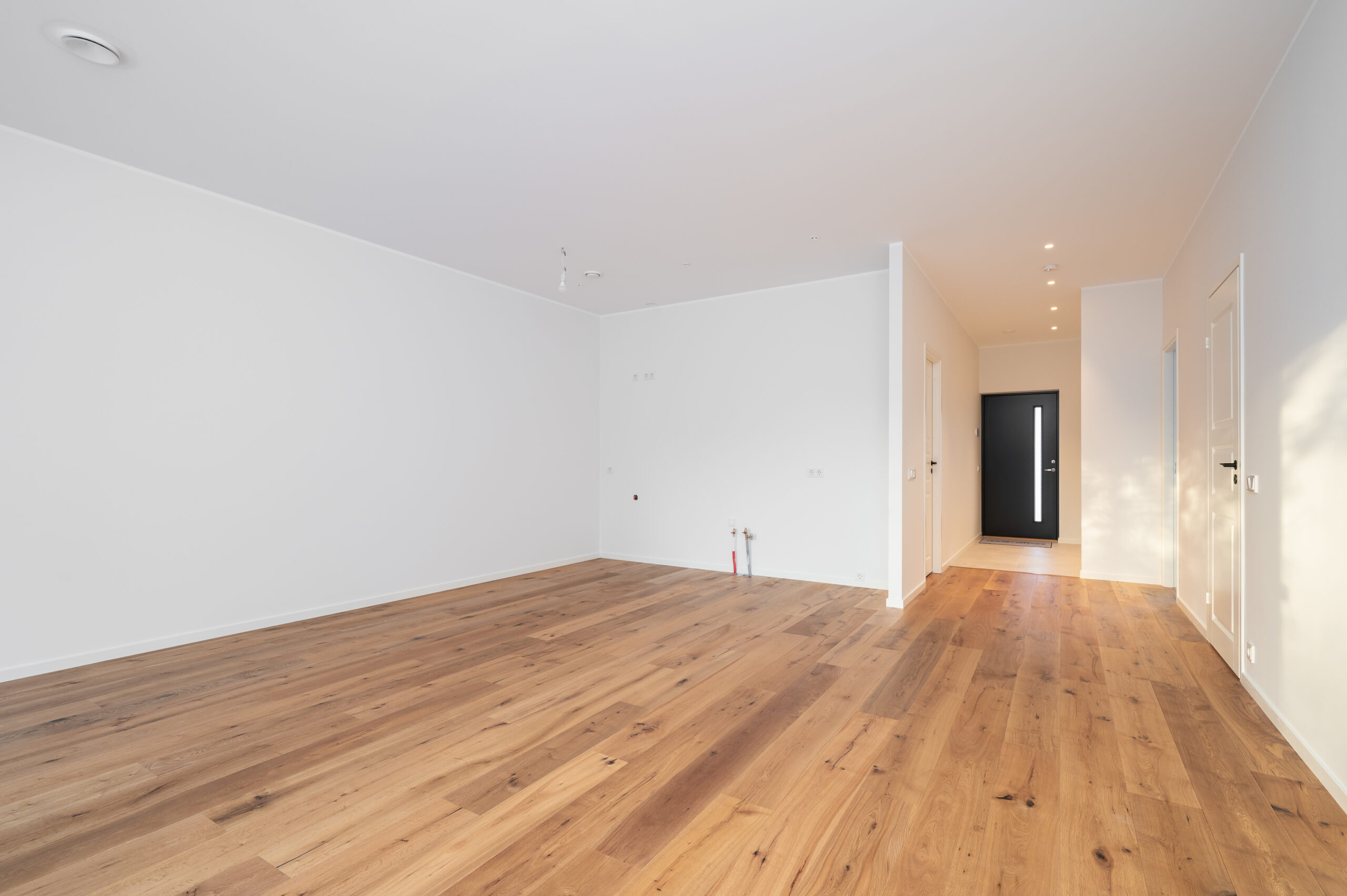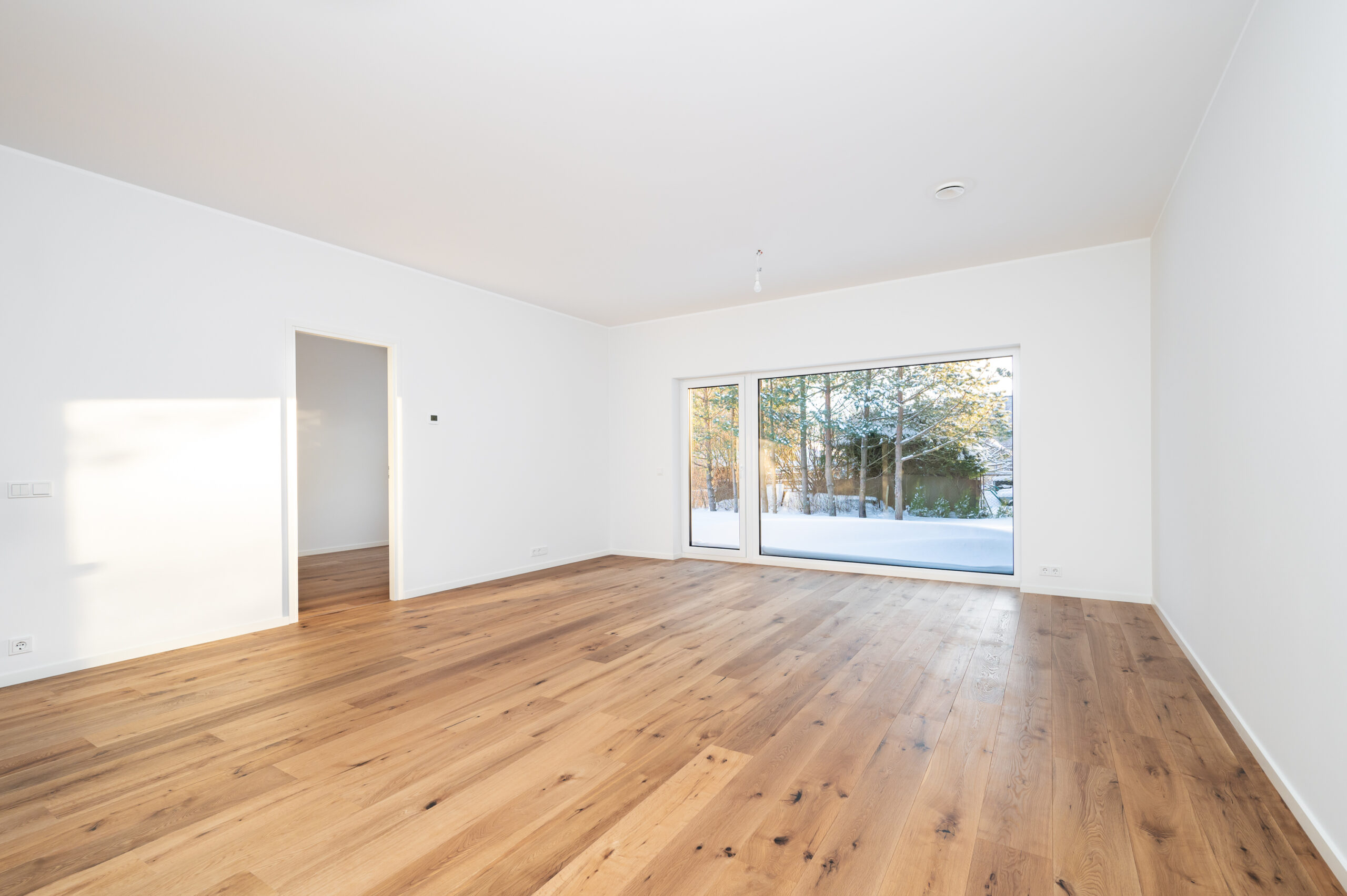 Uksed — Puidust välisuks, lukustus Assa 565 või analoog; valged siseuksed.