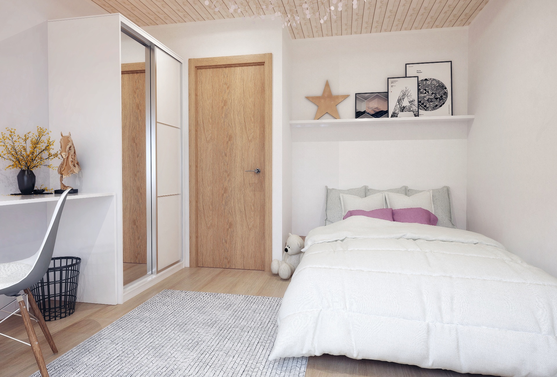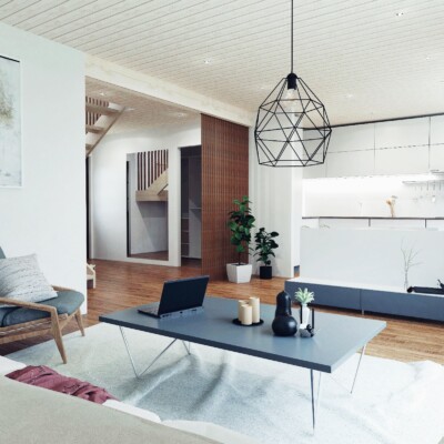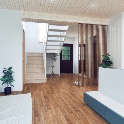 • Põrandad — Laudparkett, laminaatparkett või LVT parkett, valget tooni MDF liistud. Esikus põrand plaaditud või LVT parkett.